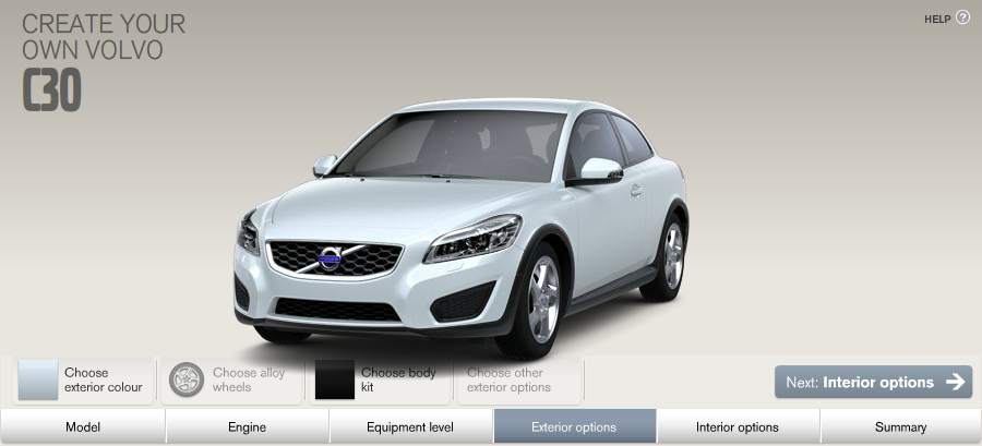 If you've ever looked at a Volvo C30 - in white with its black bodykit - and thought to yourself "Y'know, that's quite nice actually, at least for a hatchback. I'd quite like one of those, perhaps with the T5 engine"? If so, please feel free to think this and build your own C30 on Volvo's website. Quick warning - if you want the 2.5-litre Inline-5 from the Ford Focus ST though, you have to have the R-Design package, which doesn't allow a black bodykit unless it's a black car.