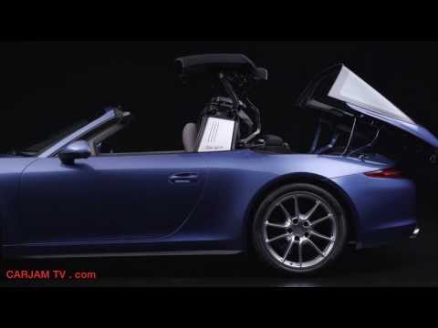 Aside from weighing 110kg more than the Carrera 4S coupé and 40kg more than the C4S Cabriolet, the new Porsche 911 Targa 4S is awesome. Why? Because of that roof that gives it its name. It's a return to the 1967 style of Targa roof - formerly absent since the 993-generation 911 of the mid-'90s, when a giant glass sunroof was employed instead - featuring a large fixed rear window and a removable central panel, but with a Transformers twist. You can see that twist in the above video. However, if YouTube's blocked at work, the central panel actually removes itself, in a piece of mechanical performance art. First, the entire rear window and some of the engine cover lift up and open rearwards. Then, two sections of the silver roll bar get out of the way of the spindly robot arms that hold the black fabric roof section in place. Said arms then carry the roof backwards and under the rear windscreen, which closes again. It looks cool.